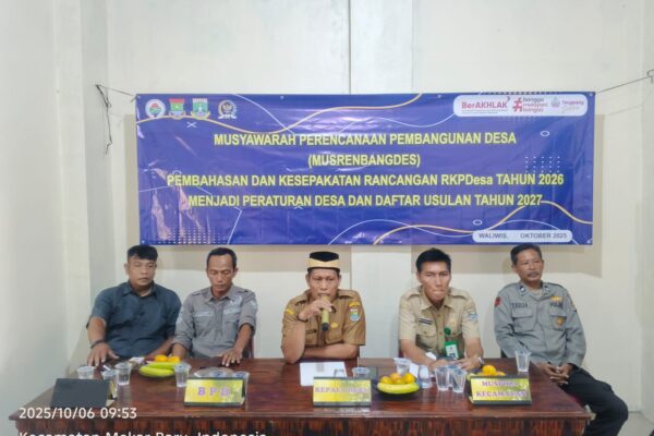 KABUPATEN TANGERANG — Pemerintah Desa Waliwis menggelar Rapat Penetapan Usulan dan Musyawarah Rencana Pembangunan Desa (Musrenbangdes) untuk tahun anggaran 2026 serta penjaringan usulan pembangunan tahun 2027. Senin (6/10/2025). Kegiatan ini bertujuan menyusun rencana pembangunan desa yang lebih baik, berkelanjutan, dan berpihak pada kepentingan masyarakat. Musrenbangdes berlangsung di aula kantor desa dan dihadiri oleh berbagai…