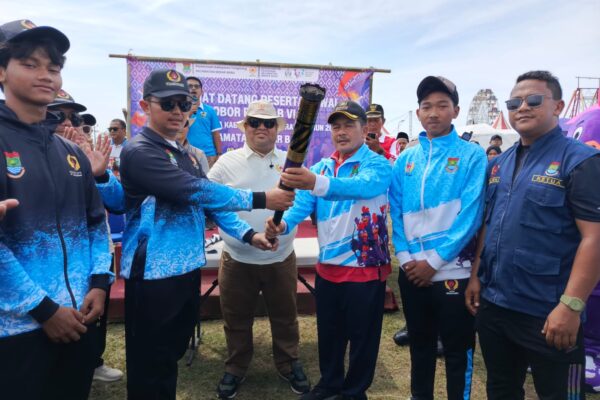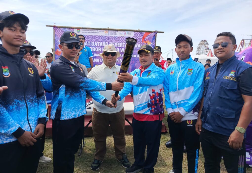 Camat Mekar Baru Resmi Terima Estafet Kirab Obor PORKAB VI Kabupaten Tangerang 2025
